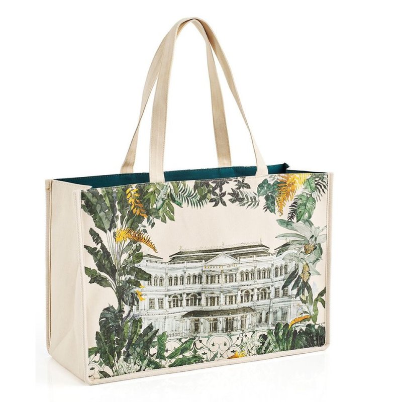 Inspired by our previous mooncake box design, this bag features hand-drawn illustrations of our iconic hotel and its lush gardens, paying tribute to the illustrious Grande Dame of Singapore.